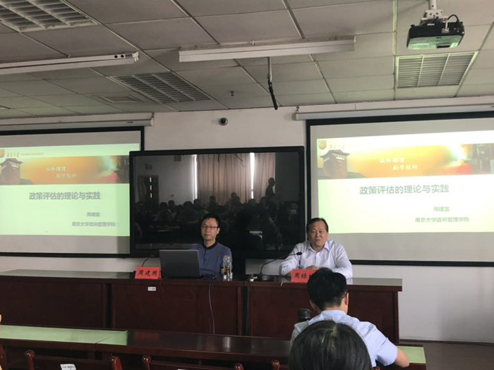 6月1日下午,南京大学政府米兰体育副院长、博士生导师周建国教授应邀,在三江楼1819报告厅做了题为《政策评估的理论与实践》的学术报告。米兰体育党委书记、公共管理学科带头人、博士生导师周绿林教授主持讲座。公共管理学科教师、研究生和MPA2017、MPA2018级学员等共同聆听了报告。