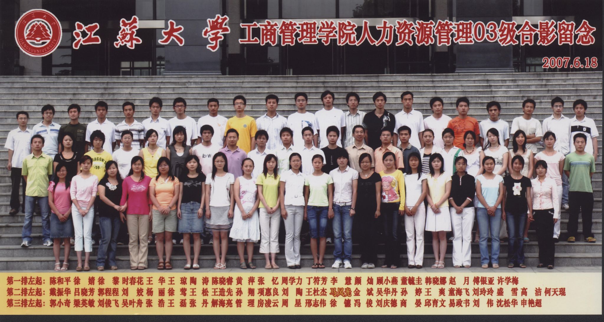 米兰体育2007届人力资源管理专业毕业合影
