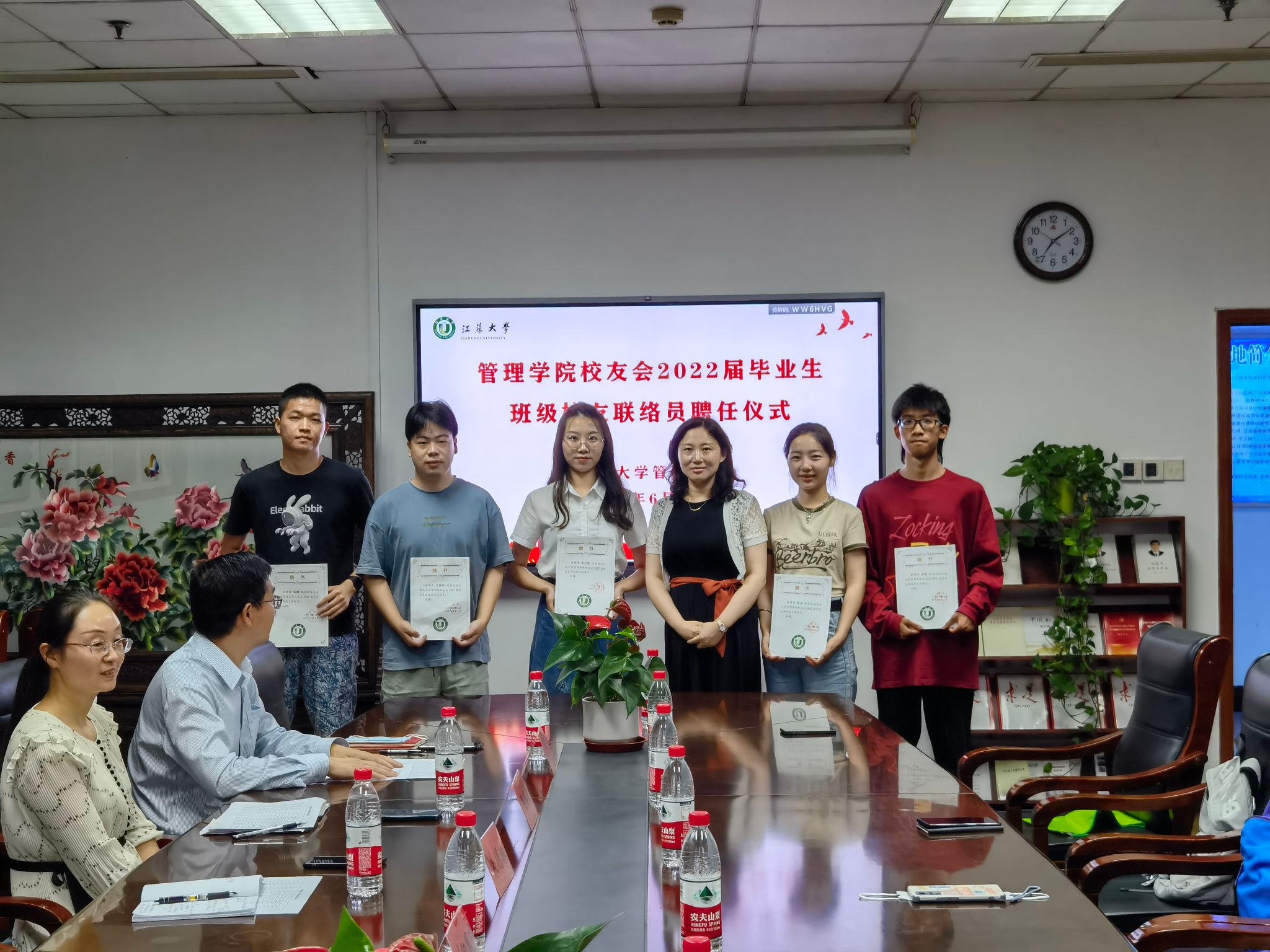 6月17日,米兰体育在三江楼1411会议室举行2022届毕业生班级校友联络员聘任仪式。米兰体育校友会会长、院党委书记王丽敏,米兰体育优秀校友、镇江市工信局党委委员、副局长朱明珠,米兰体育校友会副秘书长、院党委副书记、副院长欧阳国庆,校友周红光及2022届毕业生班级校友联络员参加仪式。仪式由2022届毕业生辅导员冯中超主持。