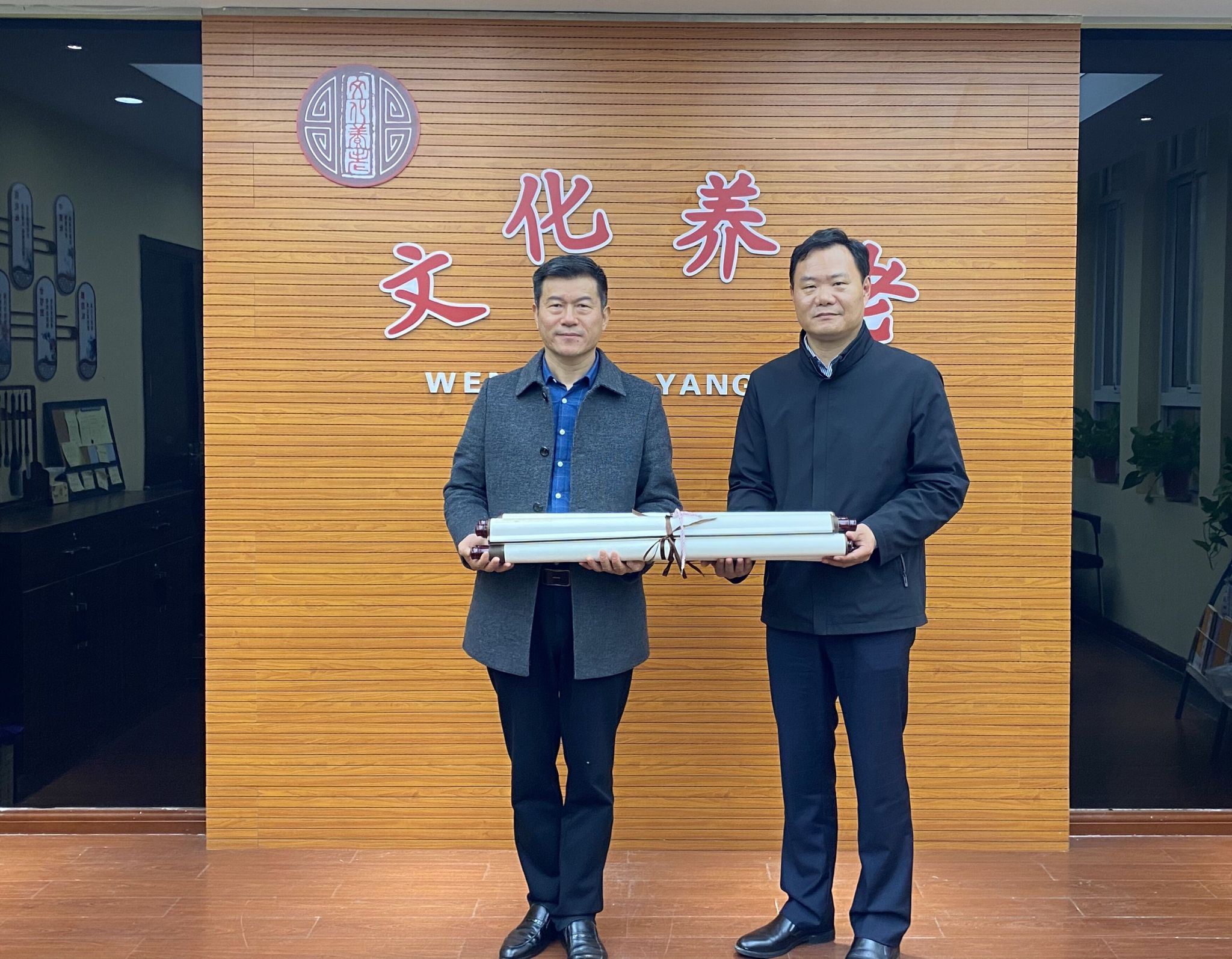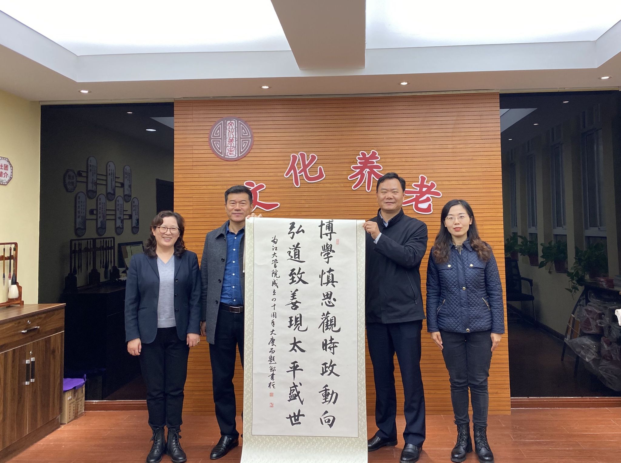 11月25日,由米兰体育主办的“喜迎二十大,永远跟党走,奋进新征程”院庆书画作品捐赠仪式在镇江市国资委行业老干部管理服务办公室2楼举行。米兰体育党委副书记欧阳国庆、团委书记周存君、辅导员杨旭以及镇江市国资委行业老干部管理服务办公室主任、党委书记钱忠勤、镇江市国资委行业老干部办“文化养老”社团党支部书记、社团团长、“银发生辉”志愿服务中队队长刘培勤参加了捐赠仪式。镇江市国资委行业老干部管理服务办公室主任、党委书记钱忠勤向我院捐赠了书画作品。